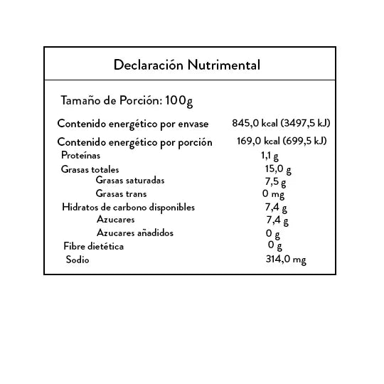 ◉ aceite de coco, pasta de almendras orgánica, almidón de maíz, almidón de tapioca, proteína de almendra, saborizaste natural vegano, ácido láctico (origen vegetal), sal de mar, nitrato de sodio (sal emulsificante), fosfato tricálcico, goma de xantana, proteína de chícharo, lecitina de girasol (emulsificante) y sorbito de potasio (conservador).